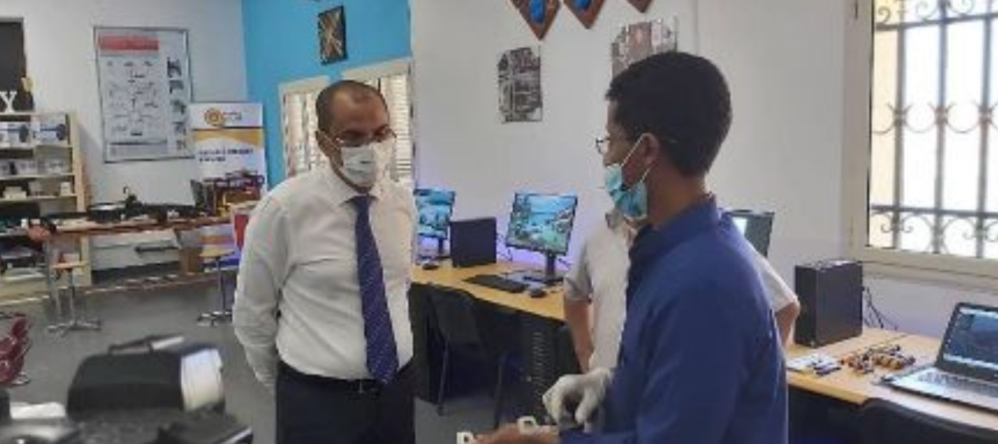 4月9日,高教和研究部长艾哈迈德在吉布提大学校长哈桑和技术顾问法赫米·艾哈迈德·穆罕默德的陪同下,考察大学生口罩制造实验室。该实验室主要用于研发隔离用具、医用氧气阀以及3D防护面罩等。