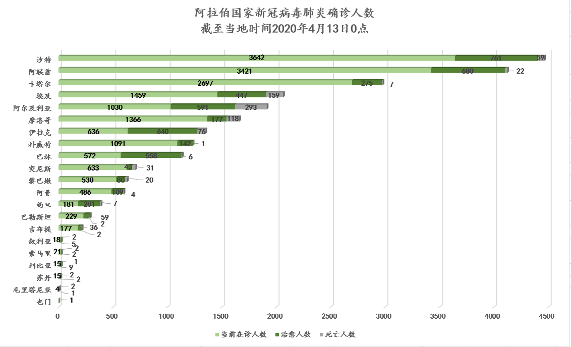 沙特通讯社:截至当地时间4月13日0点,累计确诊4462例,治愈761例,死亡59例。