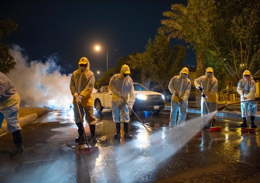利雅得省政府在宵禁期间,继续对道路和公共场所进行清洁、消毒工作,已于7天内完成502万平方米道路的清洁、消毒;并持续加强监管力度,确保商户严格遵守疫情防控相关措施。过去三天内,已关闭361家违反疫情防控决定的商铺,并处以最高金额罚款,将店主移交有关政府机构处理。