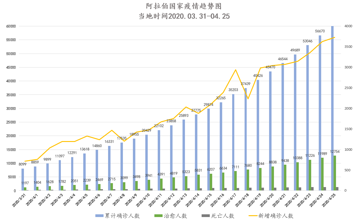 截至当地时间4月26日0点,阿拉伯国家累计确诊60395例,死亡1339例,治愈12754例,其中18个国家出现新增确诊病例共计3725例,再创单日最大增幅,沙特、卡塔尔、阿联酋新增确诊数继续攀升,伊拉克疫情持续反弹。约旦、黎巴嫩、巴勒斯坦、突尼斯疫情向好趋势稳定,逐步解除全面隔离、恢复正常生活。海合会成员国及北非国家领导人向民众致以斋月祝福,线上开展宗教系列讲座,在解除或放宽多地出行禁令的同时,提醒民众严格遵守防疫规定。疫情和斋月期间,多国物价上涨、失业率上升、油价下跌、旅游业损失惨重,加之利比亚等国战事连绵,部分国家经济形势严峻。阿盟秘书长与阿拉伯国际关系理事会成员召开视频会议,讨论应对疫情对策。我驻黎巴嫩、埃及、索马里大使就部分国家针对中国的污蔑行为与当地官员或媒体交流,坚决反对将疫情政治化、病毒标签化及对中国污名化。