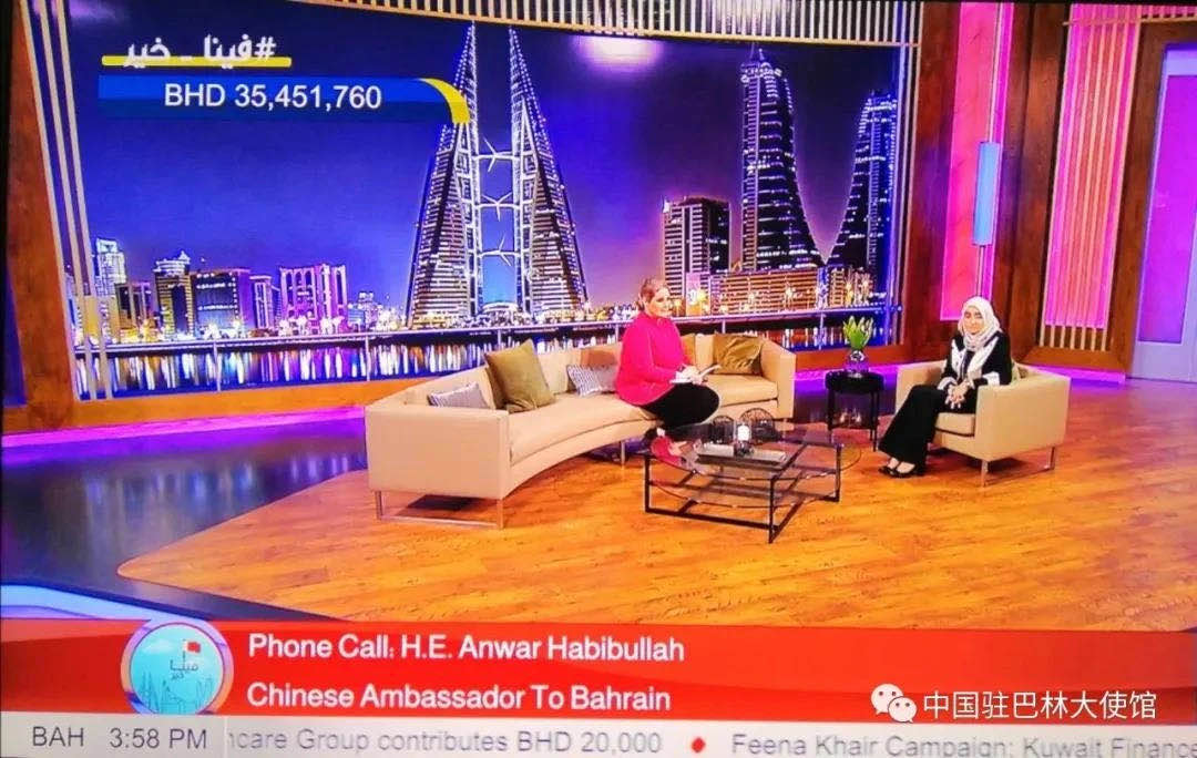 中国驻巴林大使馆:日前,巴林电视台国际频道举办抗疫募捐活动,我驻巴大使安瓦尔捐款并应邀接受现场电话连线采访。安瓦尔表示很荣幸向巴皇家慈善基金会捐款,希望能为巴抗疫贡献绵薄之力。