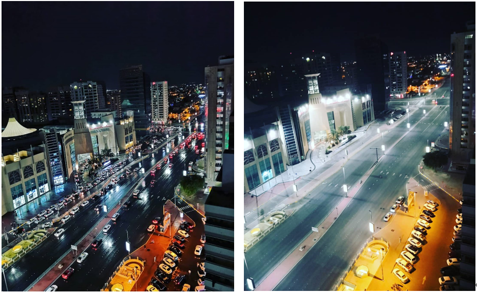 哔——哔——”,手机再次发出急促的提示音,提醒人们宵禁即将开始,透过窗户缝隙,可以看到为尽快回家而急速行驶的车辆,再过不久,整个国家又将陷入肃寂,只有路边成排点亮的街灯诉说着昔日的繁华。尤其在斋月的夜晚,本该是最热闹的,经过一整天的辛苦斋戒,穆斯林会在日落后聚餐、访友、歌舞、娱乐,共享开斋喜悦。但新冠肺炎疫情下的阿联酋已无暇庆祝,全国都在实施宵禁,居家、隔离、分餐成了夜晚的主旋律。