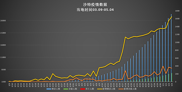 沙特疫情数据图(当地时间2020.03.09-05.04