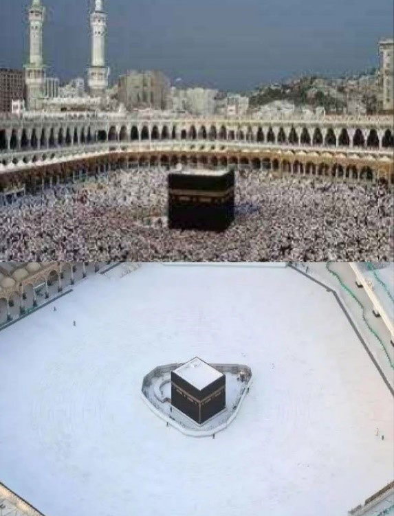 往日朝觐盛况与如今空旷的麦加大清真寺广场