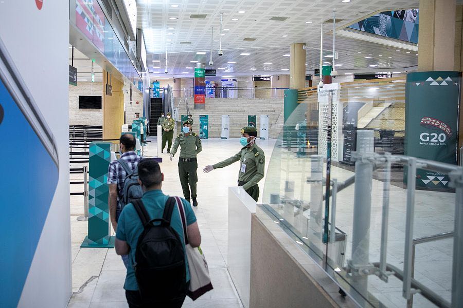 乘客自出发国机场至沙特机场,共接受12道检测措施:在出发国接受医学检查,保持安全社交距离;抵达沙特机场后,民航局采取相关措施,保障乘客有序下机,确保乘客不在机场大厅内聚集;卫生部在机场内设置检查站,测量乘客体温,如有疑似症状,立即转移至隔离场所;乘客在递交护照、输入指纹前消毒双手;海关检查区,海关人员与旅客保持1.5米以上社交距离,在行李提取区为旅客提供帮助。