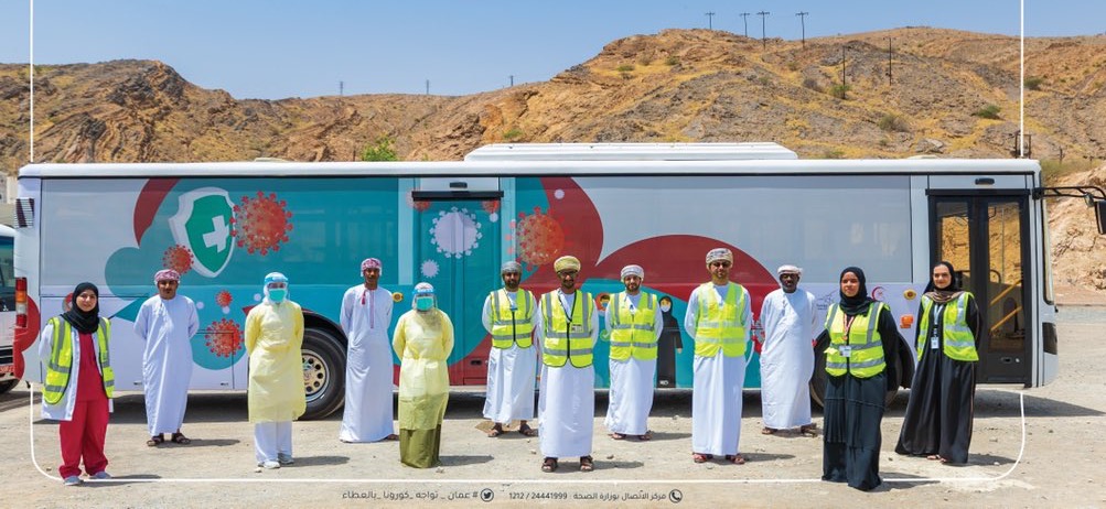 马斯喀特省卫生服务总局启动新冠病毒检测移动巴士,减轻大瓦迪区卫生中心检测压力。