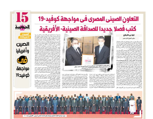 5月16日,埃及《共和国报》印刷版和网络版同时发表廖力强大使署名文章《共战疫情,中埃合作为中非友谊书写新篇章》。
