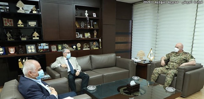 军队总司令约瑟夫·奥恩接见黎巴嫩红十字会主席,讨论国内疫情总体情况。