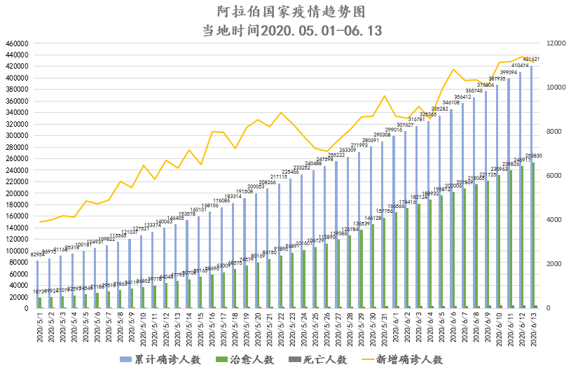 阿联酋《宣言报》:截至当地时间6月14日0点,累计确诊41990例,死亡288例,治愈26761例。