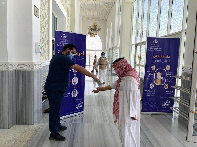为提高礼拜者防疫意识,塔布克省卫生事务局50名志愿者在清真寺开展宣传教育活动,向礼拜者普及防疫知识,敦促礼拜者佩戴口罩、自带礼拜毯、勤洗手消毒、保持安全社交距离。