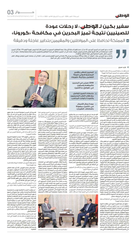中国驻巴林大使馆:日前,巴主流媒体《祖国报》专版刊发对我驻巴大使安瓦尔的专访。安瓦尔在专访中就中方采取的最新疫情防控措施、在巴中国公民防疫工作、在华巴籍留学生返校等热点问题回答记者提问,并有针对性地就病毒溯源、世卫组织等问题全面深入阐述中方政策立场,批驳美西方炒作所谓“中国病毒论”、“中国责任论”等对华攻击抹黑和污名化言论。