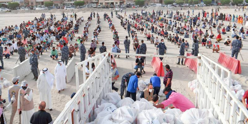 科威特各大慈善协会与内政部、民防部、特种部队合作,继续向封禁地区民众发放食品篮子。