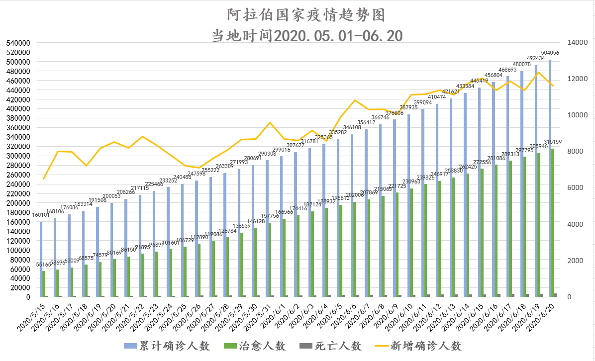 截至当地时间6月21日0点,阿拉伯国家累计确诊504056例,死亡7435例,治愈315159例,其中21个国家出现新增确诊病例共计11622例,小幅下降。约旦、突尼斯、黎巴嫩、阿尔及利亚、科摩罗、吉布提、阿联酋、卡塔尔疫情稳定。巴林、科威特在诊人数下降,但科威特本国公民感染率正不断上升;阿曼、苏丹、也门治愈率稳步提升,也门累计治愈人数已基本与在诊人数持平。伊拉克单日新增确诊数再创新高,同时治愈率稳步提升;沙特、埃及、巴勒斯坦、摩洛哥、毛塔确诊人数持续攀升,巴勒斯坦单日新增病例已连续4日创下最大增幅。阿拉伯国家暴发新冠疫情4个多月以来,疫情仍不稳定的国家在放宽限制措施上开始出现明显差异,沙特考虑到恢复经济的需要及本国较稳定的治愈水平,在疫情暂未现拐点的情况下,宣布全面恢复经济活动,解除宵禁,开放全国清真寺,而另一些国家则选择继续延长出行禁令、暂缓复工并对已开放的公共场所实施限流管制,严防疫情失控。