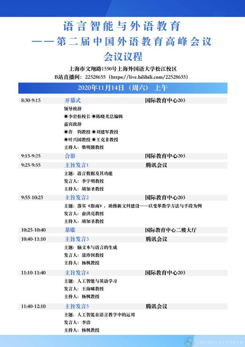 语言智能与外语教育--第二届中国外语教育高峰会议-议程