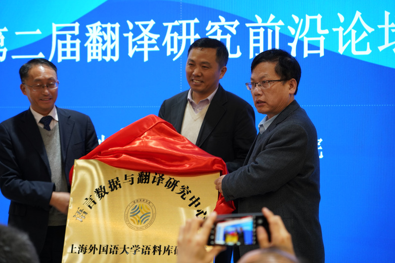 论坛开幕式由上海外国语大学韩子满教授主持,上海外国语大学语料库研究院院长胡开宝致辞。胡开宝院长向与会专家学者表示热烈的欢迎和衷心的感谢,随后从建院宗旨、研究方向、研究成果等方面介绍了上外语料库研究院,并对翻译研究的发展做出反思和展望,指出中国学者应为构建中国翻译话语体系孜孜以求。随后举行了上海外国语大学语料库研究院语言数据与翻译研究中心以及上海外国语大学语料库研究院译介学与翻译话语研究中心的揭牌仪式。