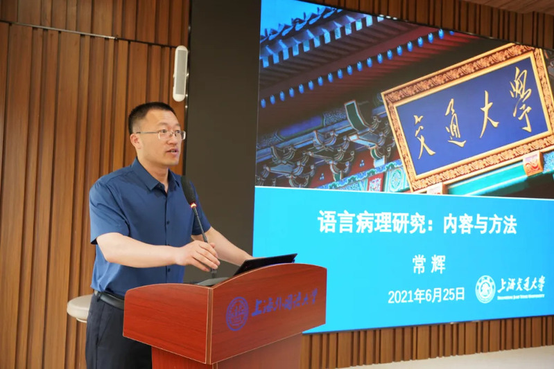 上海交通大学常辉教授讲解了语言病理研究的主要方法和内容,并以脑中风失语症为例介绍了上海交通大学在语言病理方面的研究过程与成果以及语言病理人才培养模式,展示出新文科背景下外语与医学健康融合发展的实践路径。