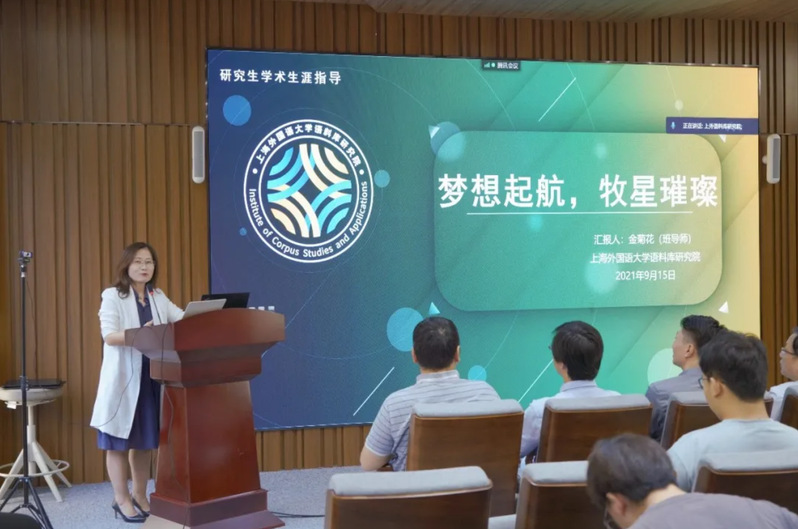 硕士研究生闫潼分享了自己研究生学习的感悟与收获,并号召全体新生在今后学习生活中得真才实学于手、秉团队精神于心、蕴家国情怀于胸,在语料库研究院留下充满诗意和奋斗汗水的青春。