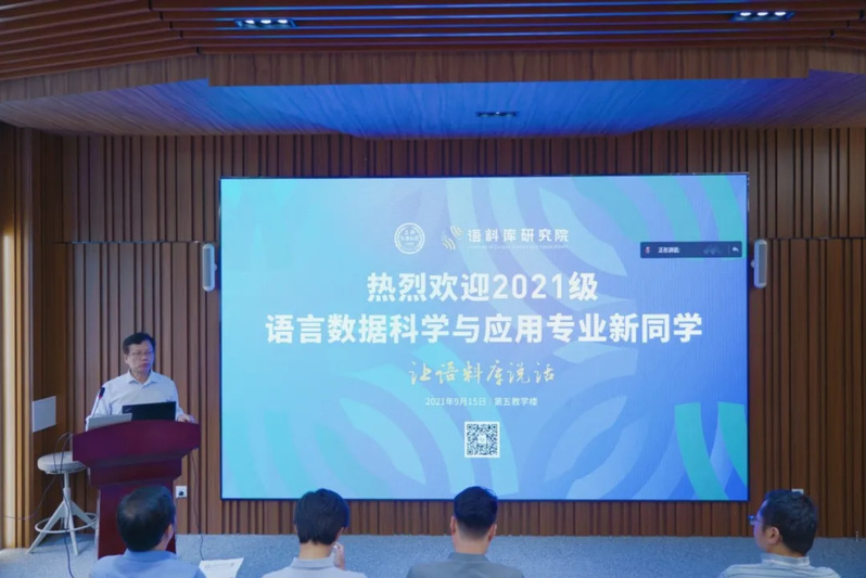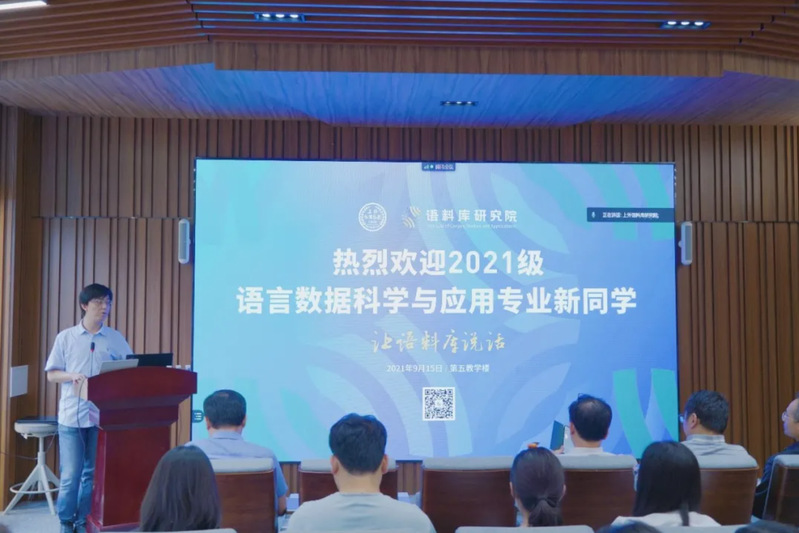 9月15日下午,上海外国语大学语料库研究院2021级语言数据科学与应用专业迎新典礼在上外松江校区五教136多功能报告厅举行。2021级新生将要在上外语料库研究院开启美好的研究生时光。语料库研究院院长胡开宝教授和副院长韩子满教授、导师代表蒋勇教授和耿强副教授及企业代表达观数据CEO陈运文一行等出席迎新典礼。迎新典礼采取线上线下相结合的方式,2021级全体新生参加了迎新典礼。