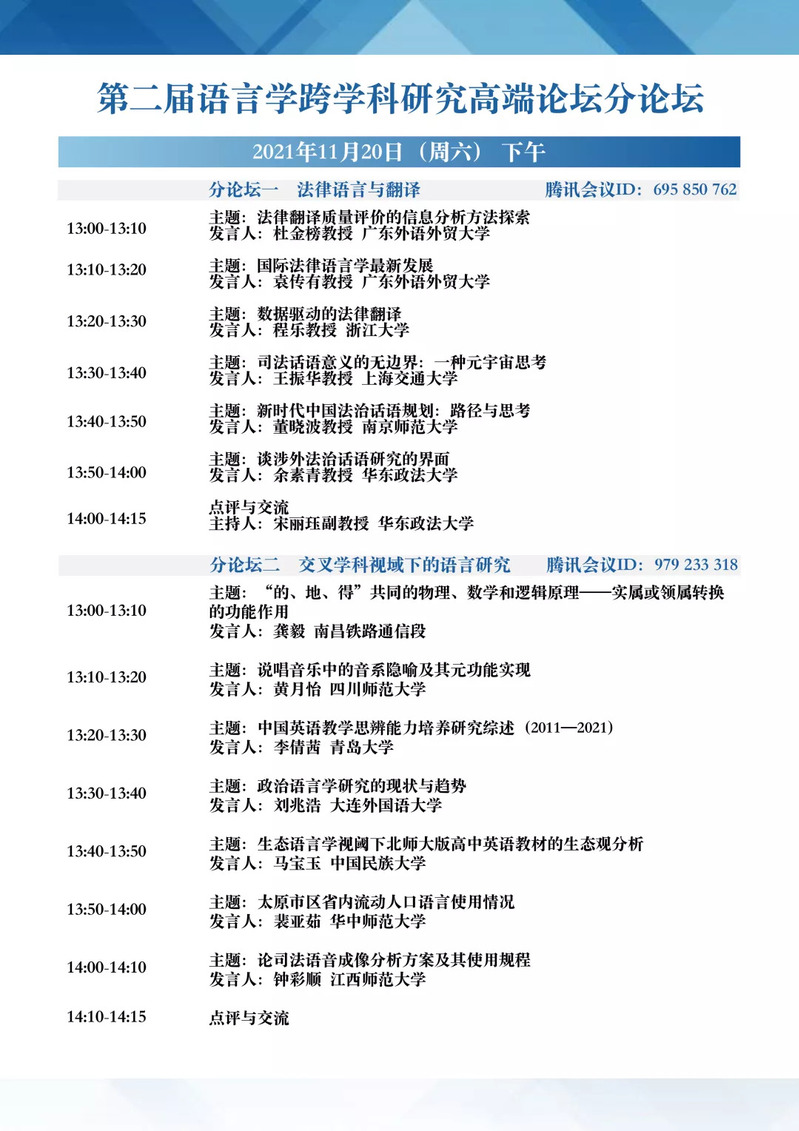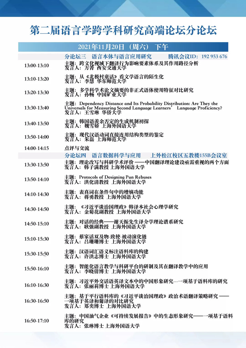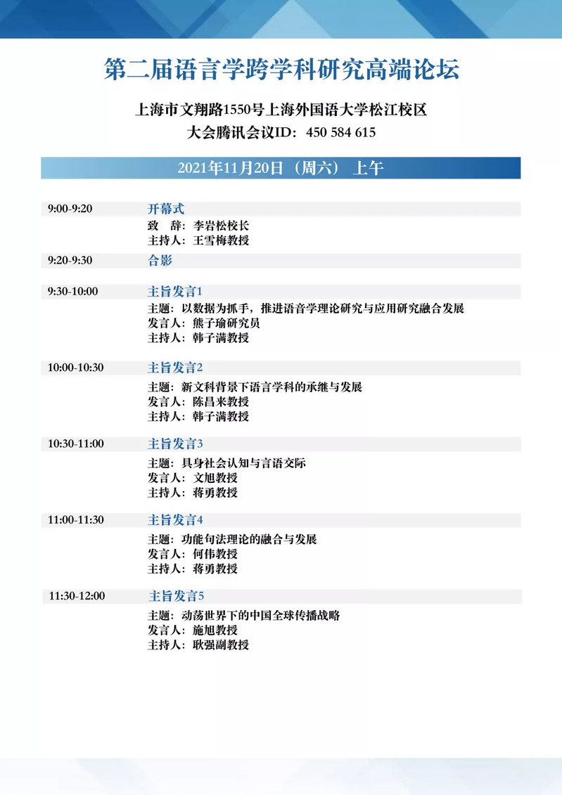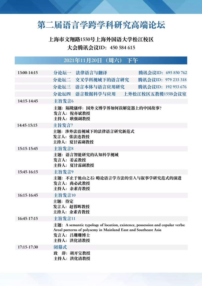 第二届语言学跨学科研究高端论坛会议议程