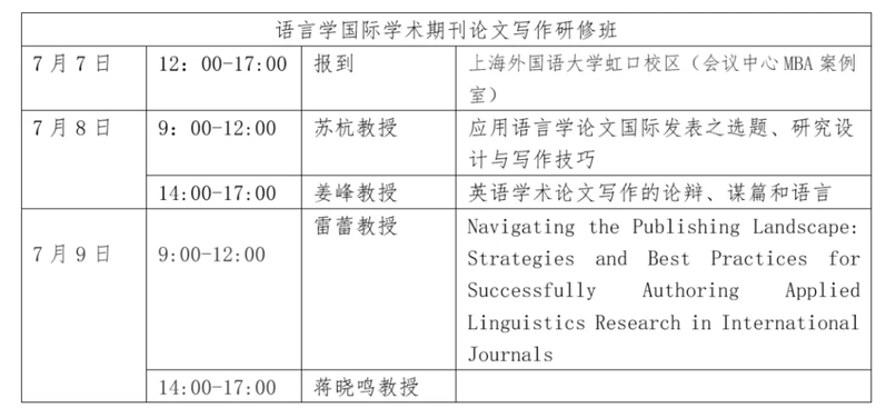 报到&培训地点:上海外国语大学松江校区5教楼136