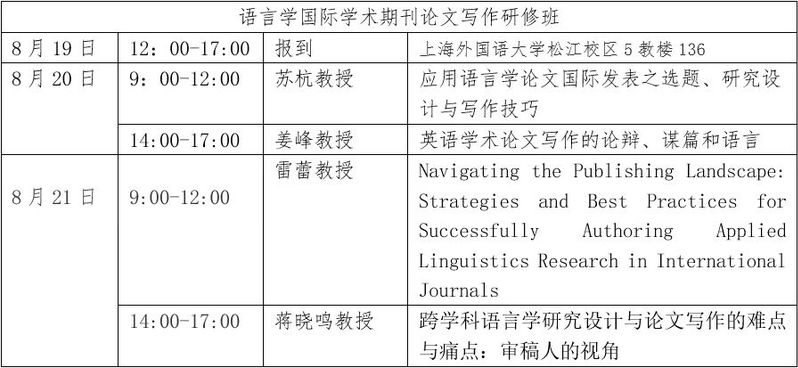 报到&培训地点:上海外国语大学松江校区5教楼136