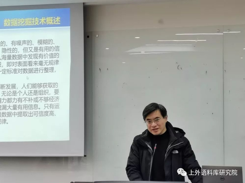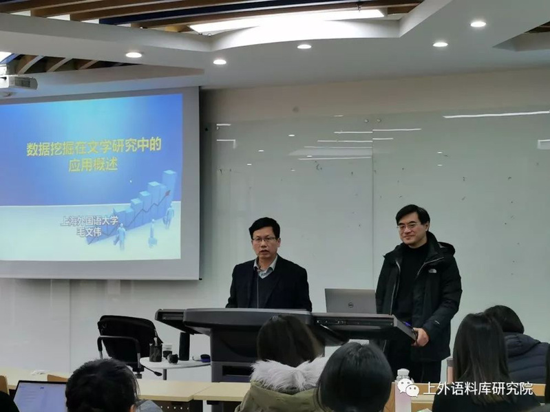 2019年12月19日下午,应上外语料库研究院邀请,上外科研处副处长毛文伟教授做了题为“数据挖掘在文学研究中的应用概述”的讲座,语料库研究院院长胡开宝教授主持了讲座,50余名师生参加了本次讲座。