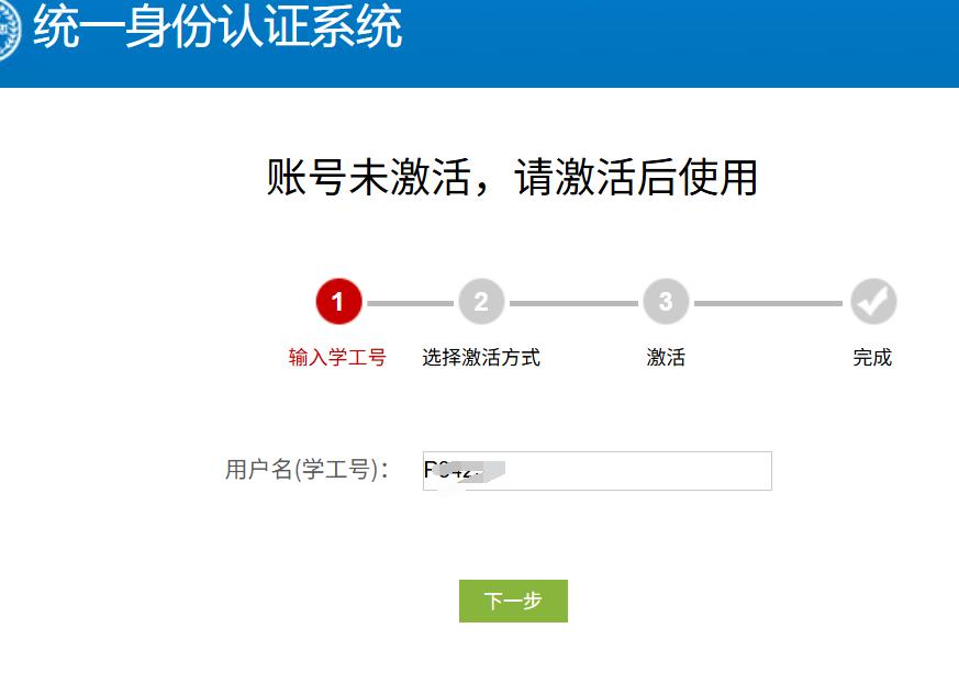 Step 2: 登入后,进入账号激活页面,点击“下一步”: