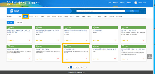 登陆后,点击服务类型中的“IT服务”,即可找到“托管硬件服务器”。