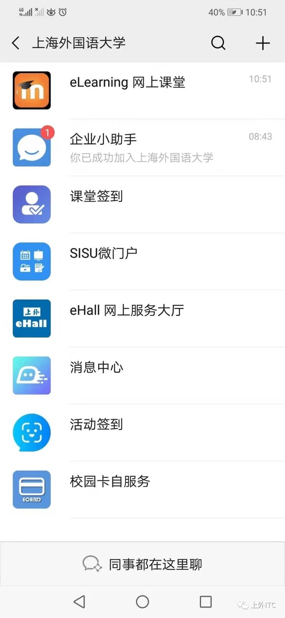In order to facilitate teachers and students to work at home and teach online, to make better use of information resources on campus, and to realize remote work and live teaching, the Information Technology Center has launched SISU's WeCom, which includes online service eHall, SISU mailboxes, eCard, eLearning online classes and other application portals. Besides, more excellent and convenient functions will be launched subsequently.