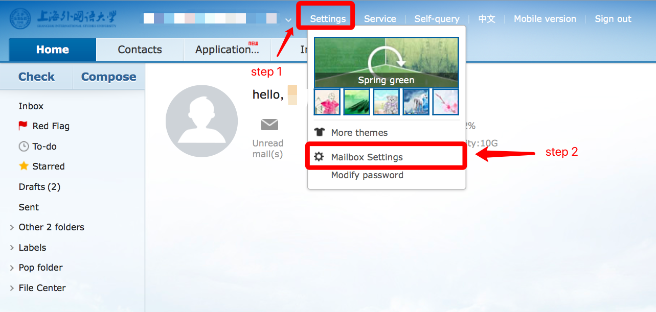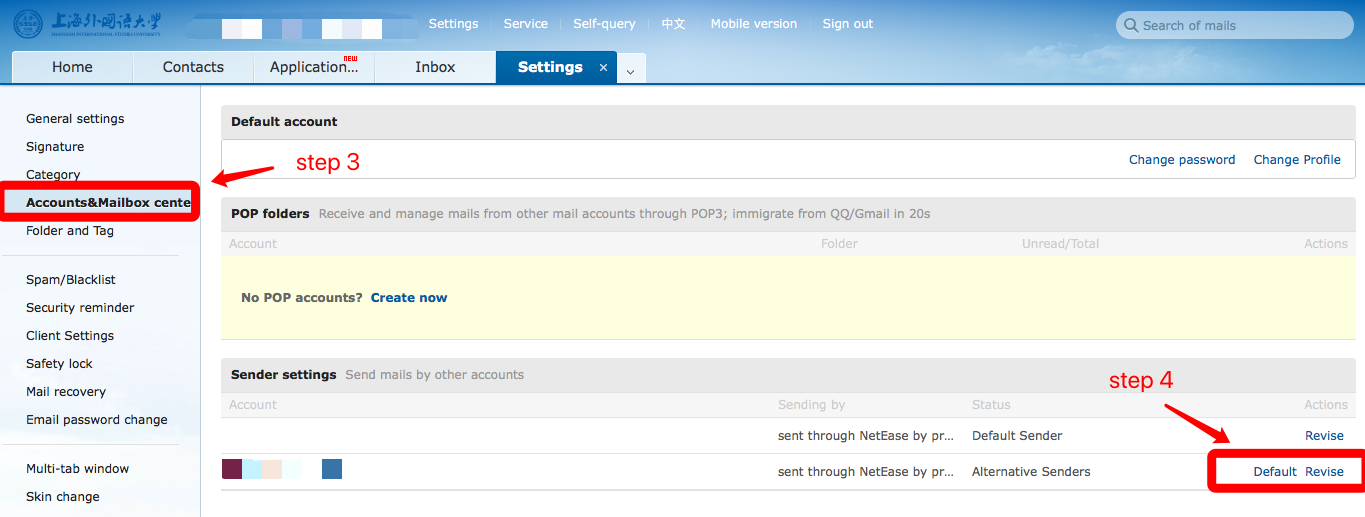 If there is no one to do it for you, you can take photos of the front and back side of your ID card after contacting the mailbox administrator by phone in advance at and send to admin@shisu.edu.cn. The administrator will review and confirm within 3 working days and reply the new password by email.