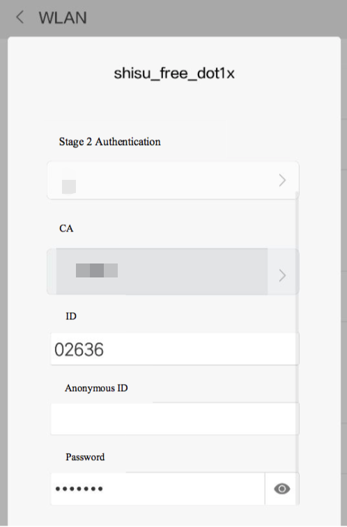 1. "Settings" - "Wireless LAN", search for shisu_free_dot1x signal and click on it