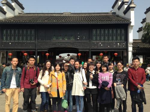 春天来了,气候回升,暖洋洋的阳光洒在身上,脱去了厚厚外套的我们对外面的世界心生向往。3月22日,研究生部2014级6班在班委们的组织带领下,前往浙江西塘品味江南古镇文化。早晨8点,学生公寓2号楼下聚集了近20名青春洋溢的少男少女,或精心打扮,或休闲简约,“浩浩荡荡”地向松江火车站出发。兴许是因为没经历过这么多人一同搭乘“红皮”火车,同学们略显激动。火车上,同学们一边欣赏着窗外的风景——沿路开满了金灿灿的油菜花,在阳光下闪烁,在风中舞蹈;一边谈天说地,互相调侃。暂时将繁重的学业放在一旁,用心聆听与感受大自然,实在令人愉悦!