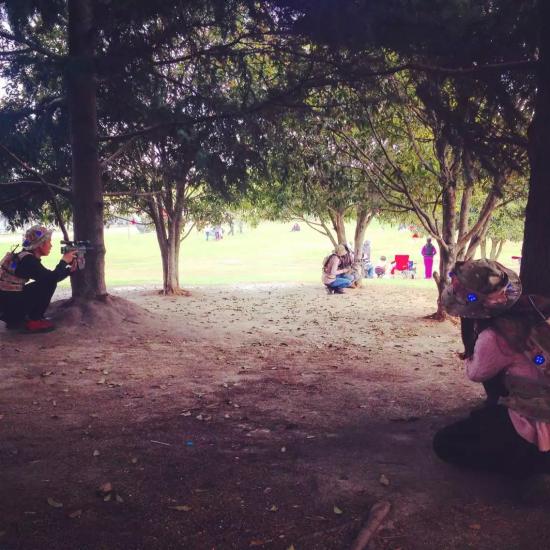 初始的阵地战刺激而有趣,小试牛刀的我们休息片刻后便摩拳擦掌,对隔壁茂密的小树林跃跃欲试了。与之前的阵地战不同,小树林枝繁叶茂,易于藏身,寻求胜机的过程可谓斗智斗勇。双方队员在队长的带领下侦查敌方火力分布,采取调虎离山的战术分散敌方阵型,集中火力逐一击破。