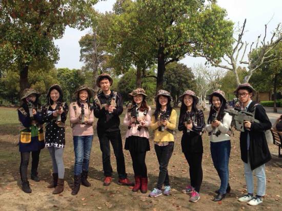 谁说女子不如男?上外妹子武勇双全出奇策。起来,青春洋溢的上外妹子们,让我们万众一心,用手堵住敌人的枪口,以多胜少,将敌人就地击毙,一路高歌我们的自创战术“堵枪口法”,让敌人束手待毙。
