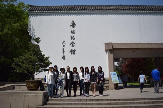 接着,大家又来到了位于鲁迅公园里著名的鲁迅纪念馆。作为一流的爱国教育基地和“国家一级博物馆”,纪念馆保留原二层庭院式的江南民居风格的建筑特色,同时又融入了现代博物馆的功能,藏有文物、文献资料数万件,其中有鲁迅的文稿、诗稿、译稿、书信,以及鲁迅收藏的木刻作品和生活用品等。纪念馆以雕塑,场景,影视,垂直景观及多媒体形式等概括地介绍了鲁迅先生丰富而深刻的精神和思想内容。大家有的若有所思地坐在演播厅观看聆听鲁迅先生革命佳作《野草》,有的和白发苍苍老人同坐一起观看鲁迅先生“生命之路”巨幅影视作品。三面墙体上近6分钟的视频浓缩了鲁迅在与黑暗世界的斗争中,披荆斩棘,艰难跋涉,奋然前行的光辉一生,见证了他不平凡的人生轨迹和终成一代思想文化伟人的起伏跌宕的心路历程。有的同学则慢慢踱步于各个作品展示厅,藏书房,雕塑小品周围,深深体悟到鲁迅不仅是新文学创作的奠基人,也是开始产生世界影响的现实主义文学大师,他将中国的新文学创作与二十世纪文学进步潮流连接了起来。鲁迅阐扬科学精神,主张精神独立和个性解放,系统地提出了“首在立人”、“精神界战士”等影响深远的理念。他的深刻性、他的高瞻远瞩,对于民族健康发展具有深远的影响。