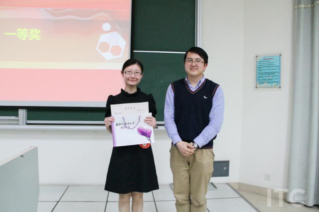 比赛伊始,一号选手朱济赛便吸引了全场的目光,一口流利的德语迅速征服了现场观众。二号选手汪弋鸢,教学基本功扎实、声音甜美,令人印象深刻。三号选手盛妍表现落落大方,将西班牙语与英语进行对比,独具匠心地使用美剧片段作为示例,出色的表达能力和极具特色的授课方式赢得了现场观众的热烈掌声。来自汉语国际教育专业的六号选手顾佳伟,语言风趣幽默,不时引来阵阵欢笑,展示了对外汉语教学的独特魅力。八号选手肖志魁开门见山,带领全场观众一起进入泰语世界,穿插轻松的小游戏,寓教于乐,将全场气氛引向高潮。十号选手冯发秀,别出心裁,课件精美,选题新颖,实用性强,和台下观众积极互动,充满日语风情。整场比赛高潮迭起,掌声不断,选手们出色的表现得到了评委和观众的一致称赞。最终,根据评委老师给十位选手的打分,本届比赛评出了一名一等奖,两名二等奖,三名三等奖,四名优胜奖以及一名网络最佳人气奖,来自西班牙语专业的盛妍同学拔得头筹。此外,比赛还安插了抽奖环节,极大地调动了现场观众的积极性,共有十位幸运观众获得了精美礼品。