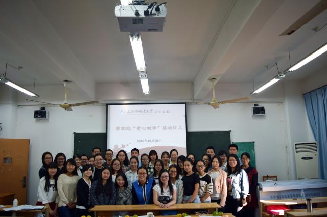 10月18日,沐浴着秋日午后的阳光,研究生部第30期“爱心助学”的志愿者齐聚虹口校区1号楼402教室,参加由研会实践部承办的新一期“爱心助学”启动仪式。出席本次仪式的还有研究生部学管办盛攀峰老师和上一期志愿者代表。