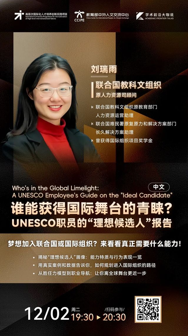 学术前沿大咖说 | 谁能获得国际舞台的青睐?UNESCO职员的“理想候选人”报告(2025年12月2日 19:30-20:30,主讲人:刘瑞雨)