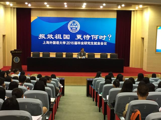 2015年10月23日下午,上海外国语大学2016届毕业研究生就业会议在虹口校区第一报告厅举行。上海外国语大学党委书记姜锋出席本次会议并讲话。