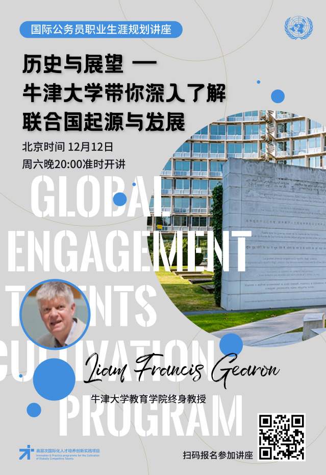 想观看本次讲座的各位同学,请扫描下方海报二维码报名。填写完相关信息后将得到一张“国际公务员职业规划讲座入场券”,请各位同学长按图片保存“入场券”至手机相册中,讲座开始前一个小时扫码即可进入讲座直播间。