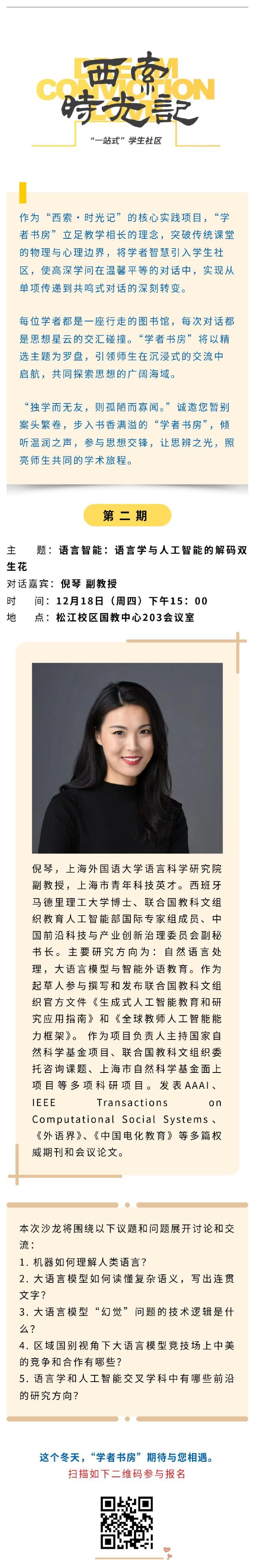 西索·时光记|语言智能:语言学与人工智能的解码双生花(2025年12月18日15:00,倪琴副教授)