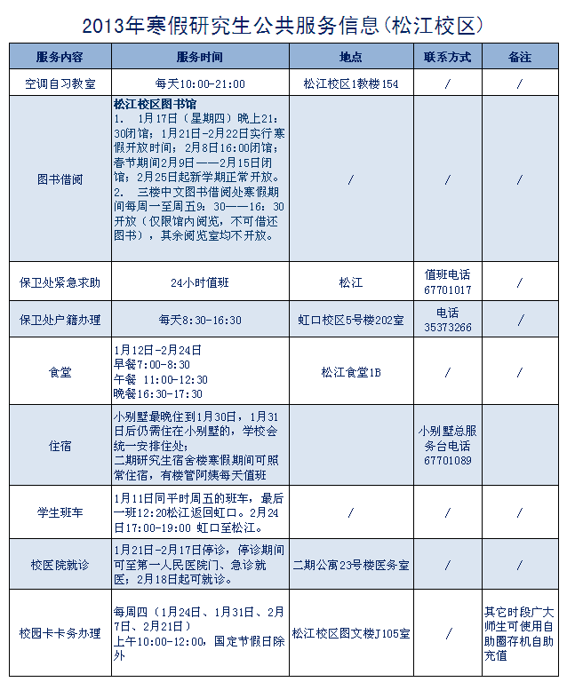 虹口校区+松江校区 2013年寒假公共服务信息.xls