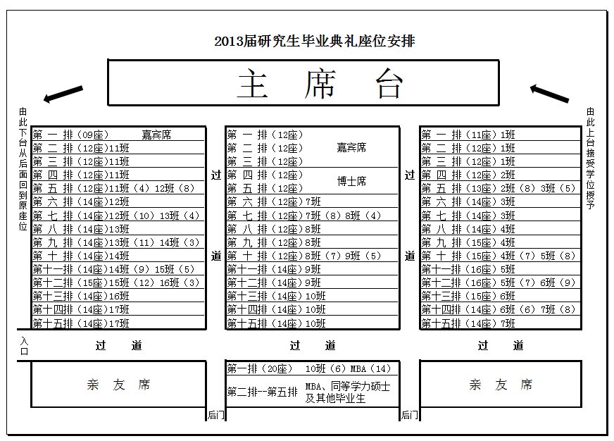 2013届春季研究生毕业典礼座位安排图及学位授予仪式安排图