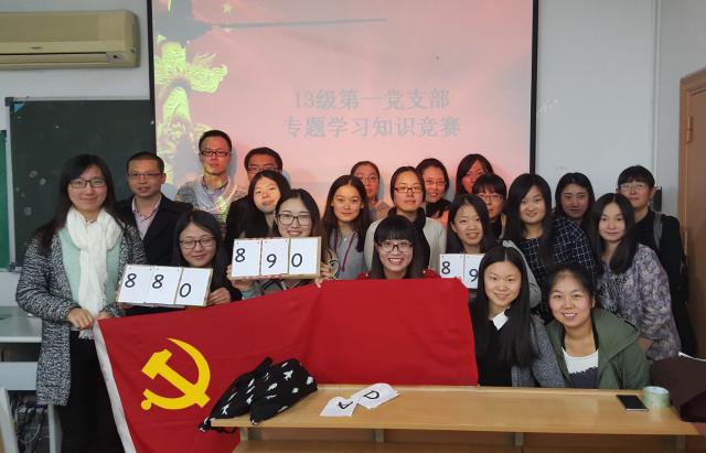 伴随着淅淅沥沥的小雨,11月16日这个初冬的夜晚,2013级第一党支部的成员和入党积极分子如约相聚在虹口校区1号楼407教室,在前期党员自主学习并撰写学习心得的基础上,为丰富学习形式,检验学习成果,加强党员对专题知识的理解,更好地发挥党员模范带头作用,本支部举办了一场特殊的专题学习知识竞赛活动。