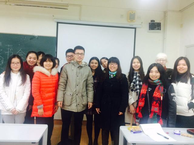 2015年12月10日晚6点,由博士沙龙主办的以“文学专场:从经典作品到文学理论,让阅读和思考启迪智慧、点亮生活”为主题的总第十七期静湖读书会在上海外国语大学松江校区4339教室举办。本次读书会邀请了我校英语语言文学专业的谢涛和韩文菊两位博士与同学们交流。两位博士以两部经典文学作品——《动物农庄》和《论语》为重点与同学们进行交流,探讨了文学理论以及英美文学研究的方方面面。