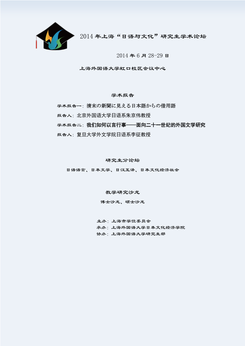 1.宣读“日语与文化”2014年上海市研究生学术论坛论文大赛获奖者名单