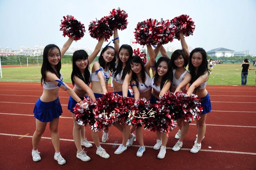 运动是力与美的结合。入场式让人心潮澎湃,接下来的啦啦操汇演带来的则是美的享受。各院系啦啦操队在动感音乐伴奏下各显其能,将气氛推到了高潮。研部八位活力四射的女生,身着洋溢着青春动感的蓝白裙装,舞动着、跳跃着、快乐着,成为了场上的焦点之一,并将啦啦操比赛一等奖摘入囊中。
