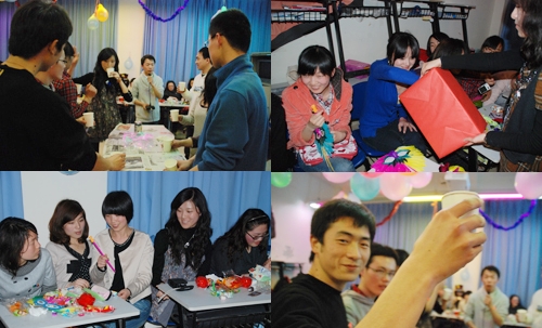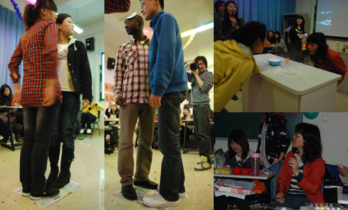 除了模仿秀,游戏环节自然也是Party不可或缺的。班委们精心设计的小游戏使活动现场欢笑声不断。无论是需要默契配合的“踩报纸”,还是紧张刺激的“吹面粉”,都让大家玩的很尽兴。大家或配合地很协调,或对抗地很彻底,抑或在“游戏惩罚”环节被很不留情面的恶整。总之这个环节按预期很好地实现了破冰,为班委们接下来的“密谋”打下了良好基础。