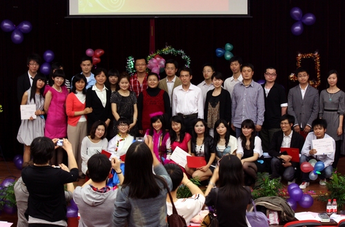 除了选手在台上的卖力演出外,还有一大特色为此次比赛增色不少,就是我们上外老师在现场的倾情助唱。其中,校团委大学生艺术团合唱队指导老师刘昊老师和校团委副书记朱鸣华老师的现场清唱,可以说是震撼全场。来自10班的张敏同学,作为观众之一,激动地说道:“终于明白什么叫‘实力派唱将’了!”此外,西方语系的赵春水老师作为此次比赛最后一位登台的“歌手”,深情款款地演绎了一首《北国之春》,为比赛画上了一个圆满的句号。