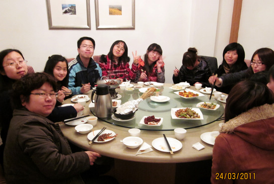 正值春光明媚的时分,也是情意融融的季节,十四班的同学们难得欢聚在一起,为莺啼绿红的自然美景更添几分人文生机。都说十一到十四班是“联合国班”,而我们十四班又是名副其实的“小联合国班”,三十二位同学一揽了欧洲大陆德、西、葡、意四国语言,想必没有哪个班会像我们这样“多才多艺”。能把各个语种的同学聚在一起实在不易,因此大家也格外珍惜这次班聚的机会。德语的同学一下专业课便马不停蹄地赶往聚餐地点,西语的同学也早早地在那里等候。大家交叉入座,有说有笑,努力为语系间的沟通与交流营造良好的气氛。